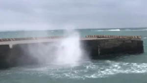Thông tin từ đặc khu Lý Sơn, tỉnh Quảng Ngãi lúc 13 giờ 30 ngày 6-11, cho biết khu vực đặc khu bắt đầu có mưa to, gió lớn. Khu vực ven biển Lý Sơn có mưa nặng hạt, gió giật cấp 6-7, có lúc đạt cấp 9. Sóng biển liên tục dâng cao, bọt nước tung trắng xóa vào bờ kè, khu vực cảng.