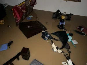 Đợt lũ dâng nhanh bất thường đã khiến nhiều khu dân cư ở thị xã Ninh Hòa chìm sâu trong biển nước, có nơi ngập tới hơn một mét chỉ trong thời gian ngắn. Nhà cửa, tài sản, đồ dùng sinh hoạt của người dân bị cuốn trôi hoặc hư hỏng nặng, khiến cuộc sống bị đảo lộn hoàn toàn. Nhiều gia đình phải rời bỏ nhà cửa trong đêm, chỉ kịp mang theo vài vật dụng thiết yếu để tìm nơi trú ẩn an toàn.