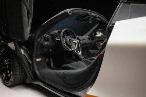 Chiếc 750s Spider trang bị hàng loạt tính năng MSO Bespoke, gồm: lớp sơn Gloss Tokyo Pearl, chắn bùn trước và khe thoát gió bằng sợi carbon, mui điện sắc, và ghế xô siêu nhẹ. Xe mang dòng chữ “74-84-95” trên cánh gió sau, một chi tiết tinh tế gợi nhắc kỷ lục Triple Crown vô song của McLaren trong lĩnh vực đua xe. Tài liệu đi kèm đầy đủ, bao gồm: nhãn giá gốc, lịch sử bảo dưỡng, sách hướng dẫn và báo cáo sạch.
